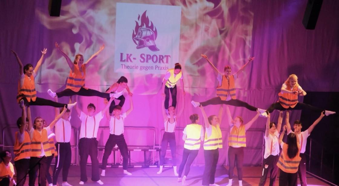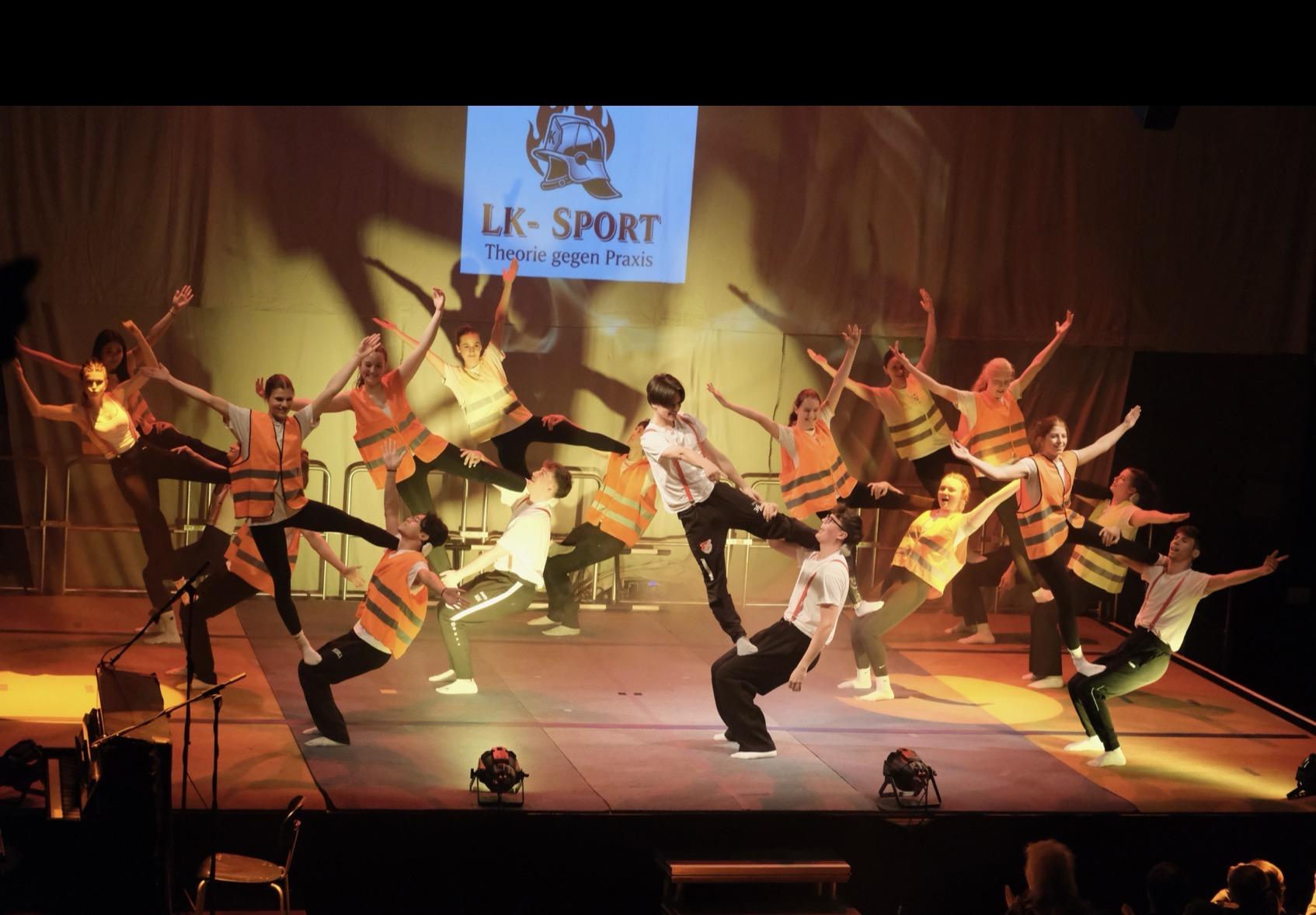 Im Zentrum der Darbietungen standen mehrfach sportliche Begabungen. Den Auftakt machten die Hip-Hop-Mädels Angelina Haidt und Sarah Werner. Das Leistungsfach Sport (Leitung: Stefan Eberherr) zeigte eine vor Lebensfreude und an positiver Energie überbordende Choreographie in Chippendale-Manier.