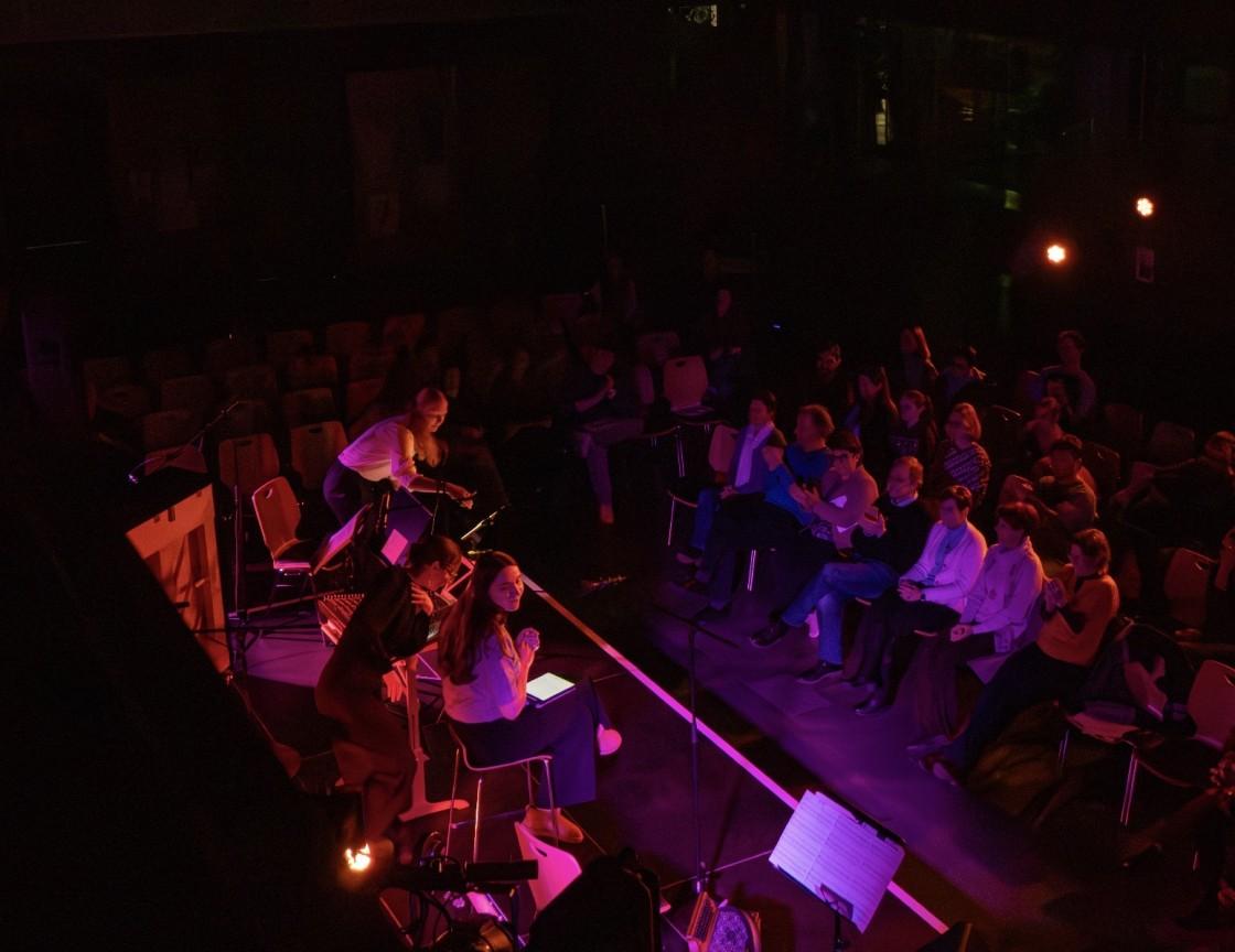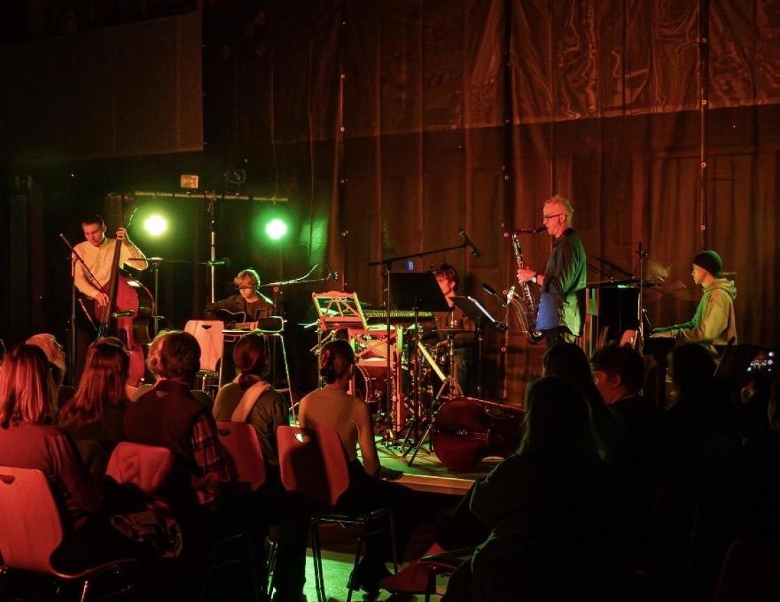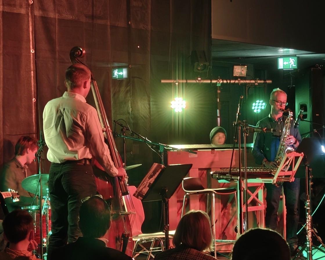 Diese kreativen Ergebnisse des Literaturwettbewerbs aus dem Schuljahr 24/25 wurden musikalisch begleitet durch das Vivaldi-Trio mit Klara Lauber, Merle Schütze und Maria Griesmeier, der Steirisch-Ziach von Georg Seebeck sowie der Klezmer-Klarinette von Anna Hafner. Die Rhythmus-Sektion der Jazz-Combo mit Henri Thurmaier, Manuel Holst, Elias Höftmann und Noel Dreifuß ergänzte das klangliche Kaleidoskop durch coolen Bar-Jazz in einer kulinarisch-künstlerischen Pause mit dem AK Catering (Leitung: Veronica Suttner) und einer kleinen Vernissage aus der Fachschaft Kunst.