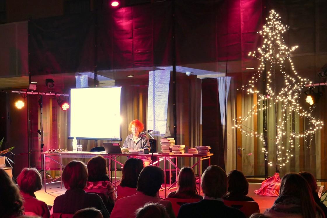 Bunter Bücherabend mit Frau Dr. Budeus-Budde in stimmungsvoll geschmückter Aula