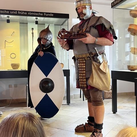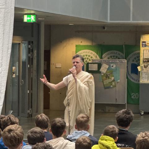 Von Anfang an beschäftigen wir uns, ausgehend von einfachen lateinischen Lesestücken und deutschen Sachtexten, mit der antiken Geschichte und Gesellschaft sowie historischen und mythologischen Gestalten. Durch Anschauungsmaterialien und eine Exkursion ins Römermuseum nach Seebruck versuchen wir dies für die Schülerinnen und Schüler erfahrbar zu machen.