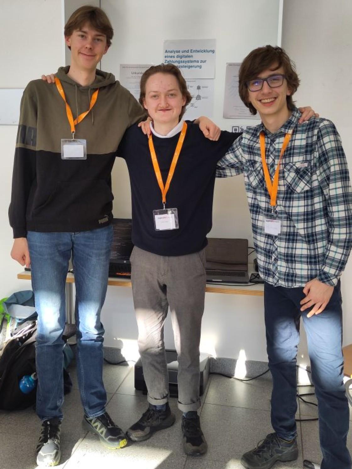 Zusammen mit Korbinian Weber (11A) und Nils Höngesberg (10A) sind bereits erste Versionen der App programmiert und schon kleine echte Beträge damit überwiesen worden. Valentin hat das Projekt schon bei Wirtschaftskonferenzen in München und Oxford vorgestellt und zu dritt sind Valentin, Korbinian und Nils damit am 25.02 und 26.02. beim Regionalwettbewerb Jugend forscht angetreten.